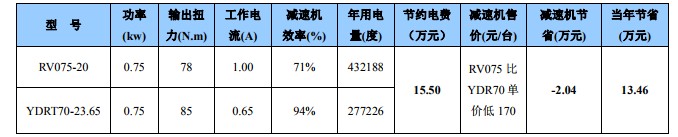 實例:清遠某陶瓷釉線 120 臺,用齒輪機替代 RV 方箱電費節省實例。