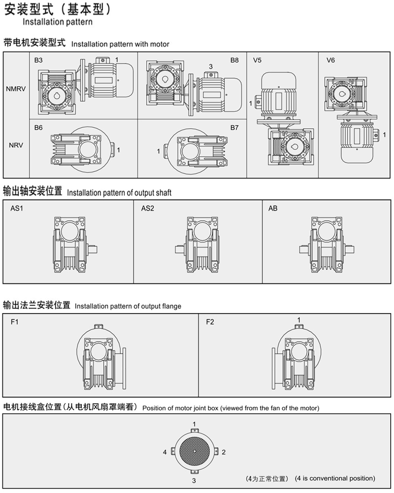 RV系列蝸輪蝸桿減速機分類形式有兩種: